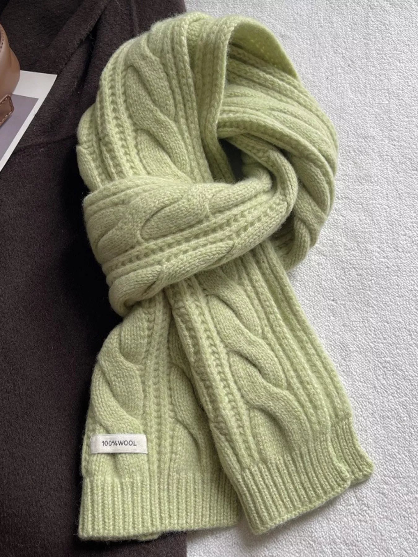 Wool Cable Knit Winter Scarf